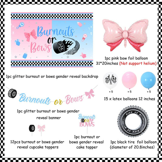 Burnouts or Bows Gender Reveal Party Supplies Pack