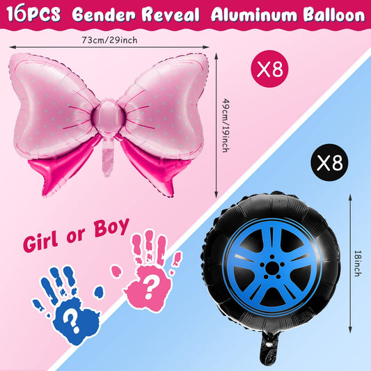 Gender Reveal Foil Balloons Burnouts or Bows 16 Pcs