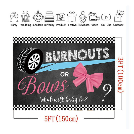 Burnouts or Bows Gender Reveal Tablecloth 3Pcs