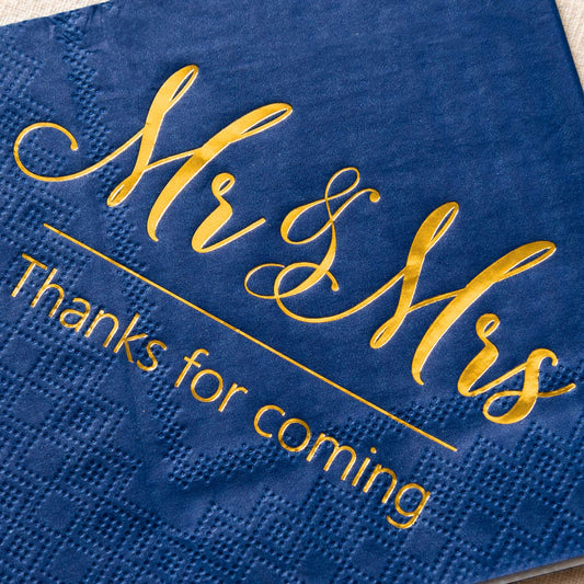 Mr & Mrs Wedding Napkins Blue Gold 100 Pcs