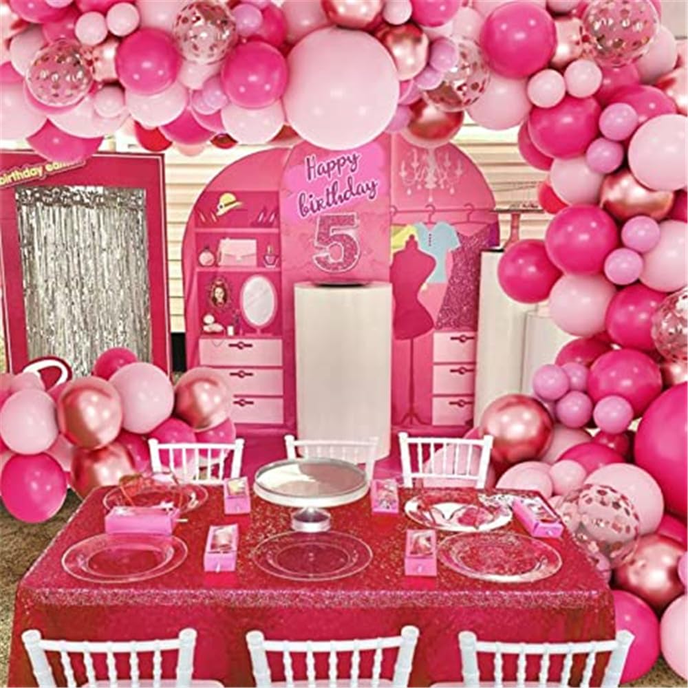 Pink Balloon Arch Kit,140Pcs Hot Pink Balloons Arch Garland Kit with Hot Pink Balloons,White Metallic Rose Gold Confetti Balloons for Girls Birthday Party,Baby Shower Decoration,Wedding,Bridal Shower